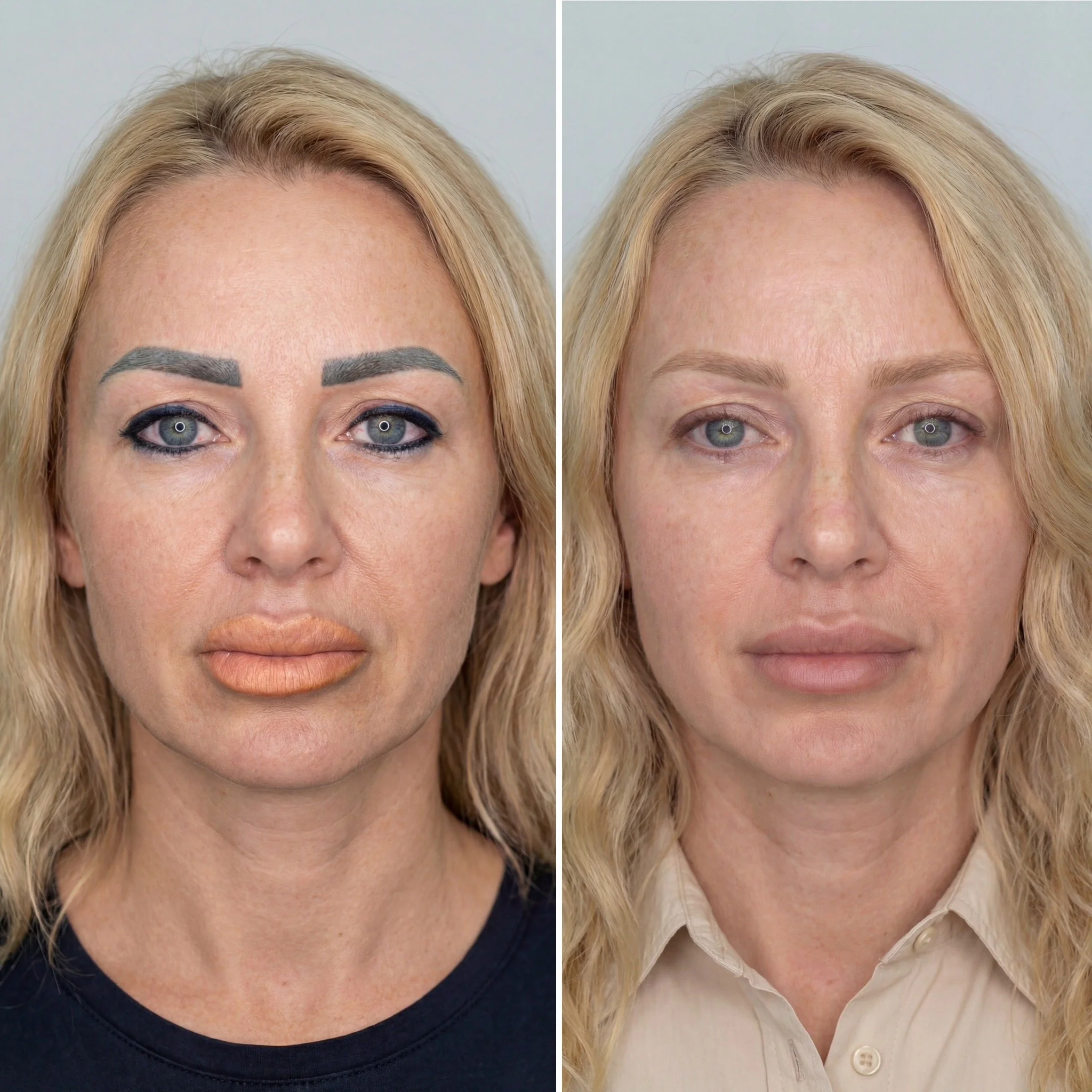 Before and after cases of unwanted or outdated permanent makeup removal using thr Rejuvi Tattoo Remover method. Effective on all pigment colours in a single session